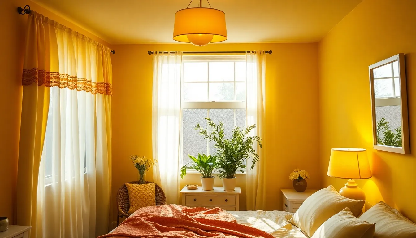 Sheer curtains represent one of the most effective ways to maximize natural light while preserving your yellow bedroom’s brightness. We recommend installing lightweight fabrics that filter sunlight gently, allowing yellow walls and furniture to maintain their vibrancy throughout the day. These curtains prevent harsh glare while ensuring your yellow elements receive adequate illumination to showcase their full beauty.