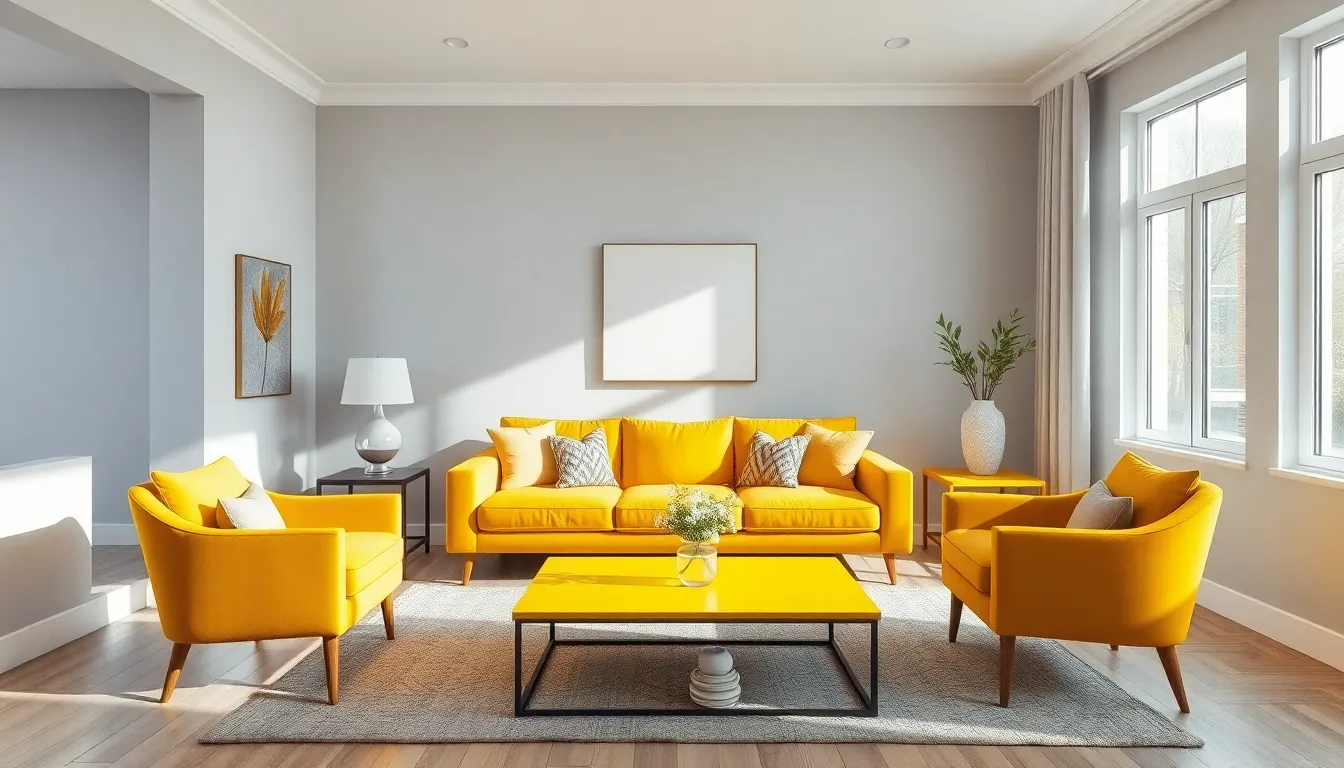 Gray serves as the perfect neutral partner for vibrant yellow elements in contemporary living spaces. This sophisticated pairing creates glamorous and chic environments that feel both modern and timeless. We recommend incorporating gray through larger elements like walls or major furniture pieces while adding yellow through strategic accents.
